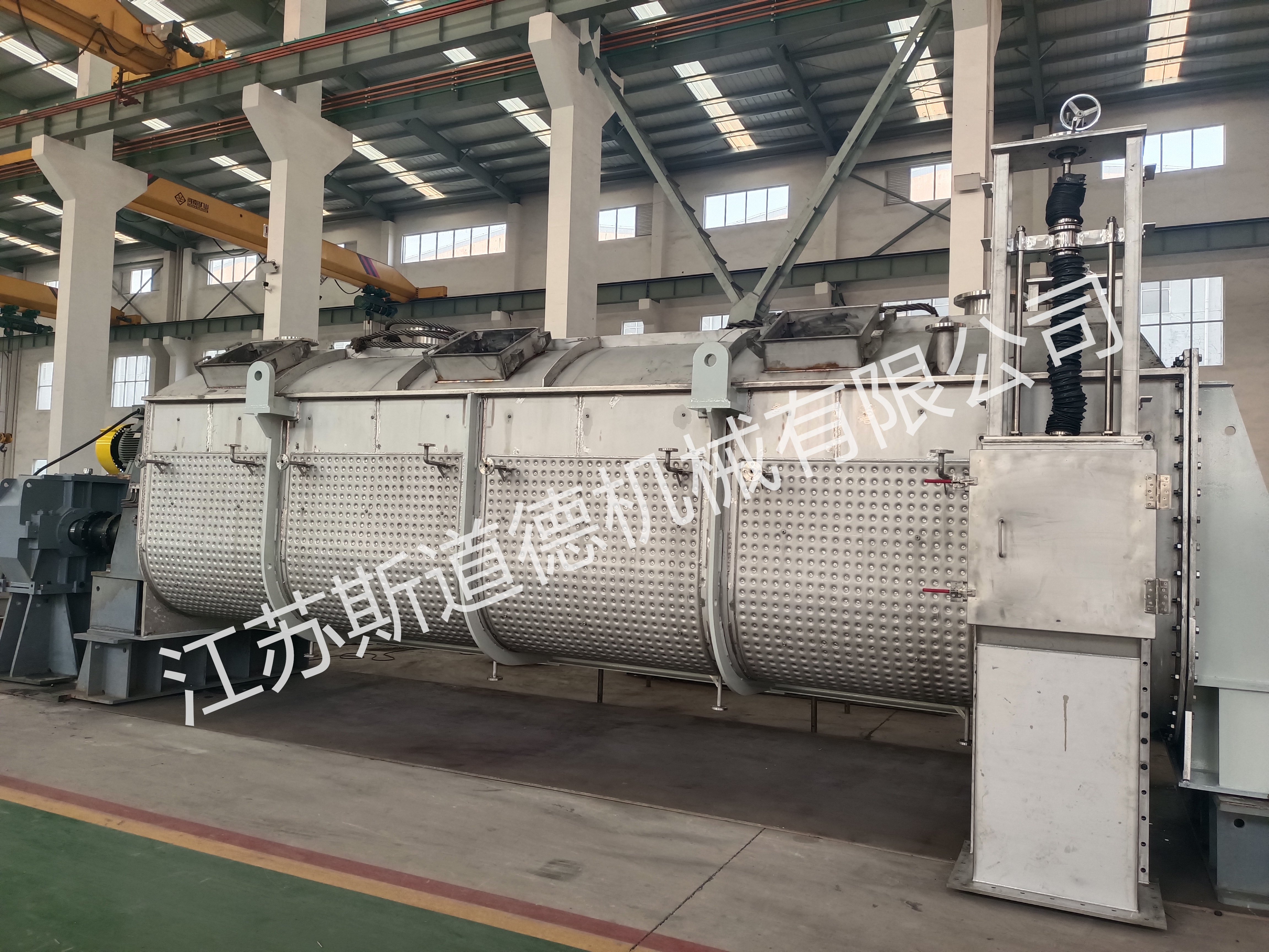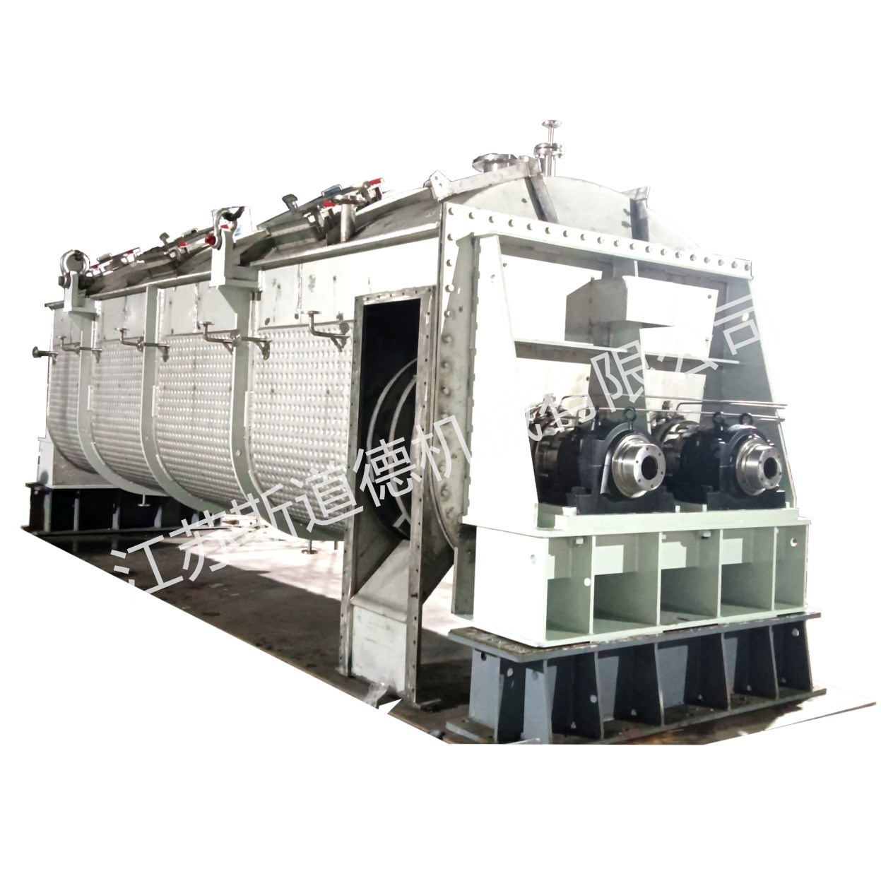 — 能耗低:由于間接加熱,沒有大量攜帶空氣而帶走熱量,干燥機外壁又設(shè)置夾套和保溫層,對漿狀物料,蒸發(fā)1kg水僅需1.1-1.3 kg飽和蒸汽。