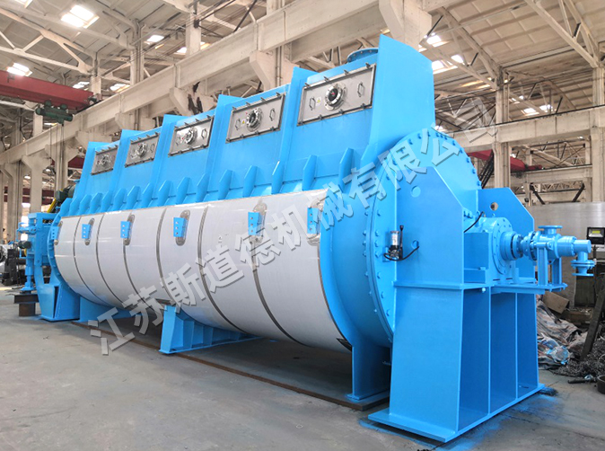?? PSD型圓盤式干燥機不僅外殼可進行加熱,同時內(nèi)部轉子也進行加熱,大大增加了干燥面積,提高熱效率,確保物料徹底干燥。干燥機是由一個橫臥的外殼和一個帶有加熱的轉子所組成,轉子上安裝多個加熱盤片,盤片上裝有可調(diào)節(jié)角度的推料器,在工作時既能加熱物料,又可將物料沿出料端方向推進。轉軸內(nèi)部的蒸汽分布裝置能使蒸汽均勻地分布到每一件加熱盤片內(nèi),蒸汽在盤片內(nèi)流動,使加熱盤片保持恒定的溫度,冷凝水通過軸端特殊的裝置排出。該設備干燥效率高,使用壽命長,維修頻率低。廣泛用于市政污泥、工業(yè)污泥、動物蛋白、植物蛋白、食品、化工、農(nóng)藥等高含水量和高粘度物料的干燥,根據(jù)不同的物料物性,材質(zhì)可選用碳鋼、304、316L、2205等。